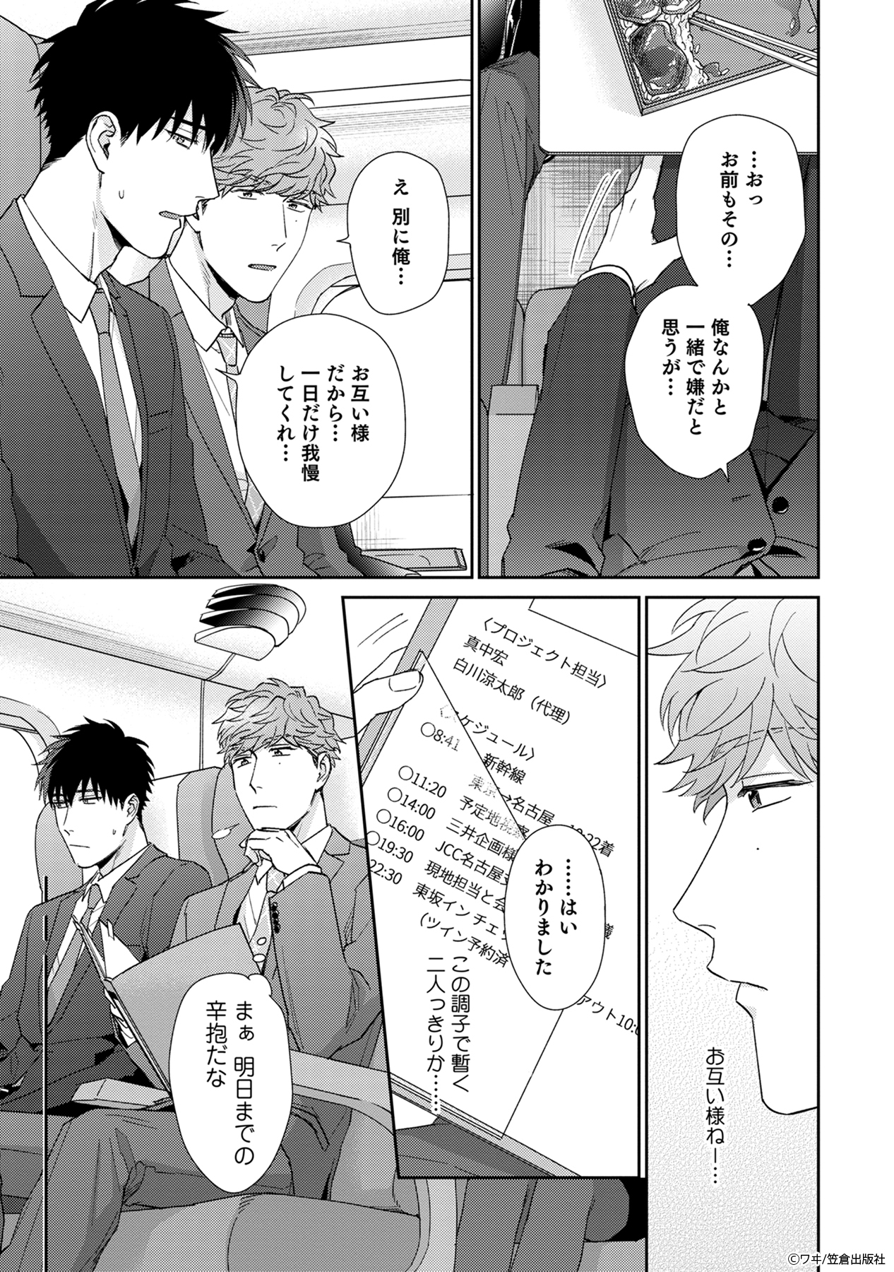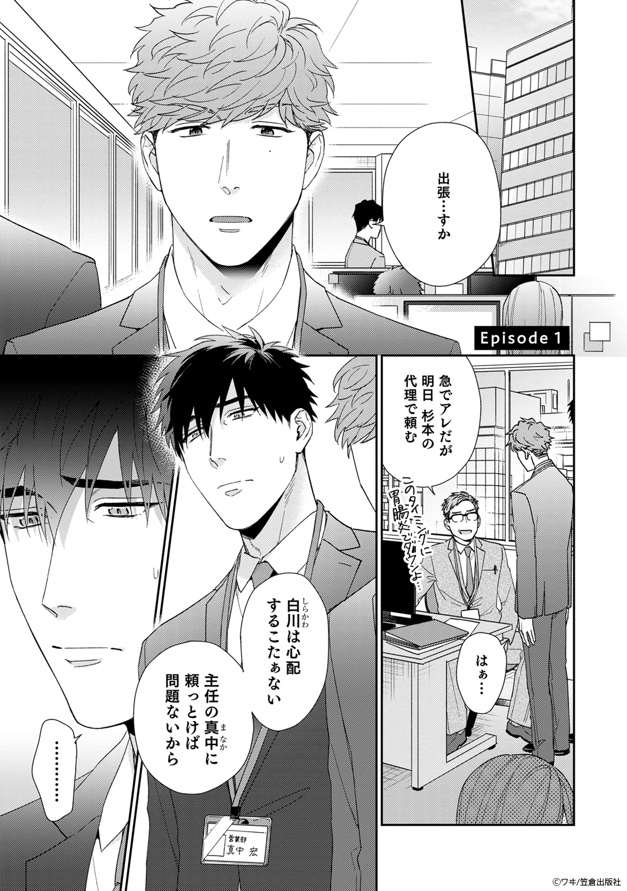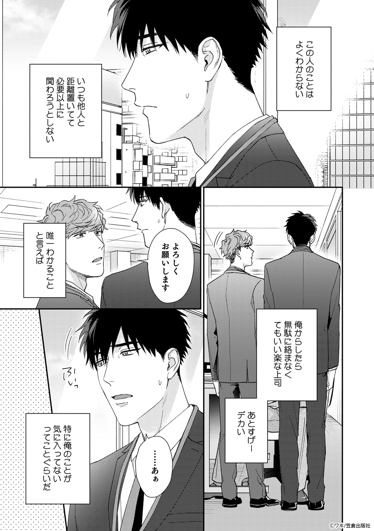 ドライな新入社員の白川は、自らを異様に避ける上司の真中と、出張先のホテルで一晩過ごすことに。