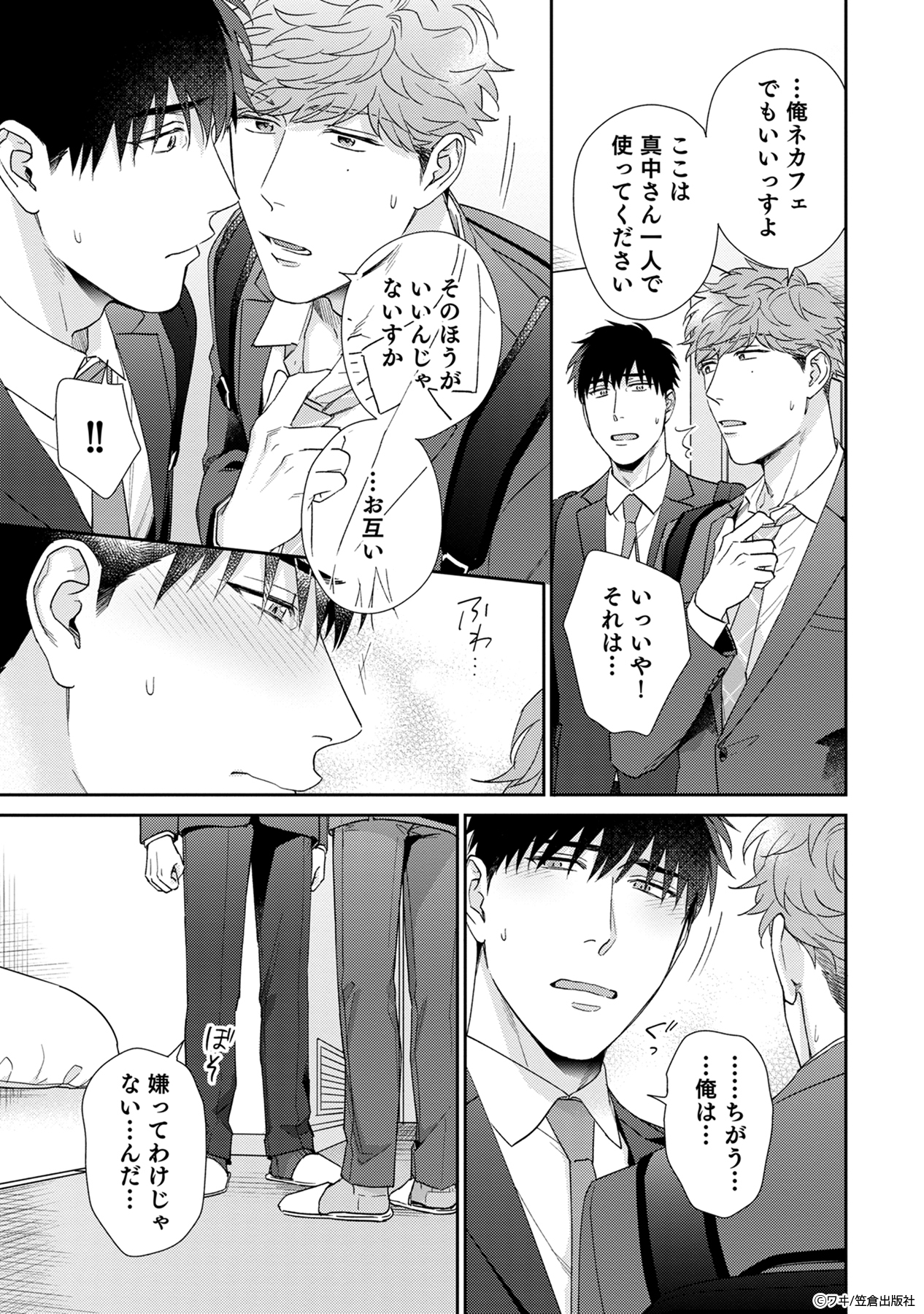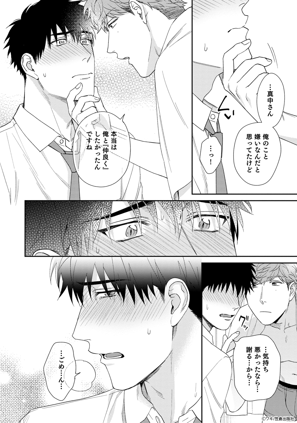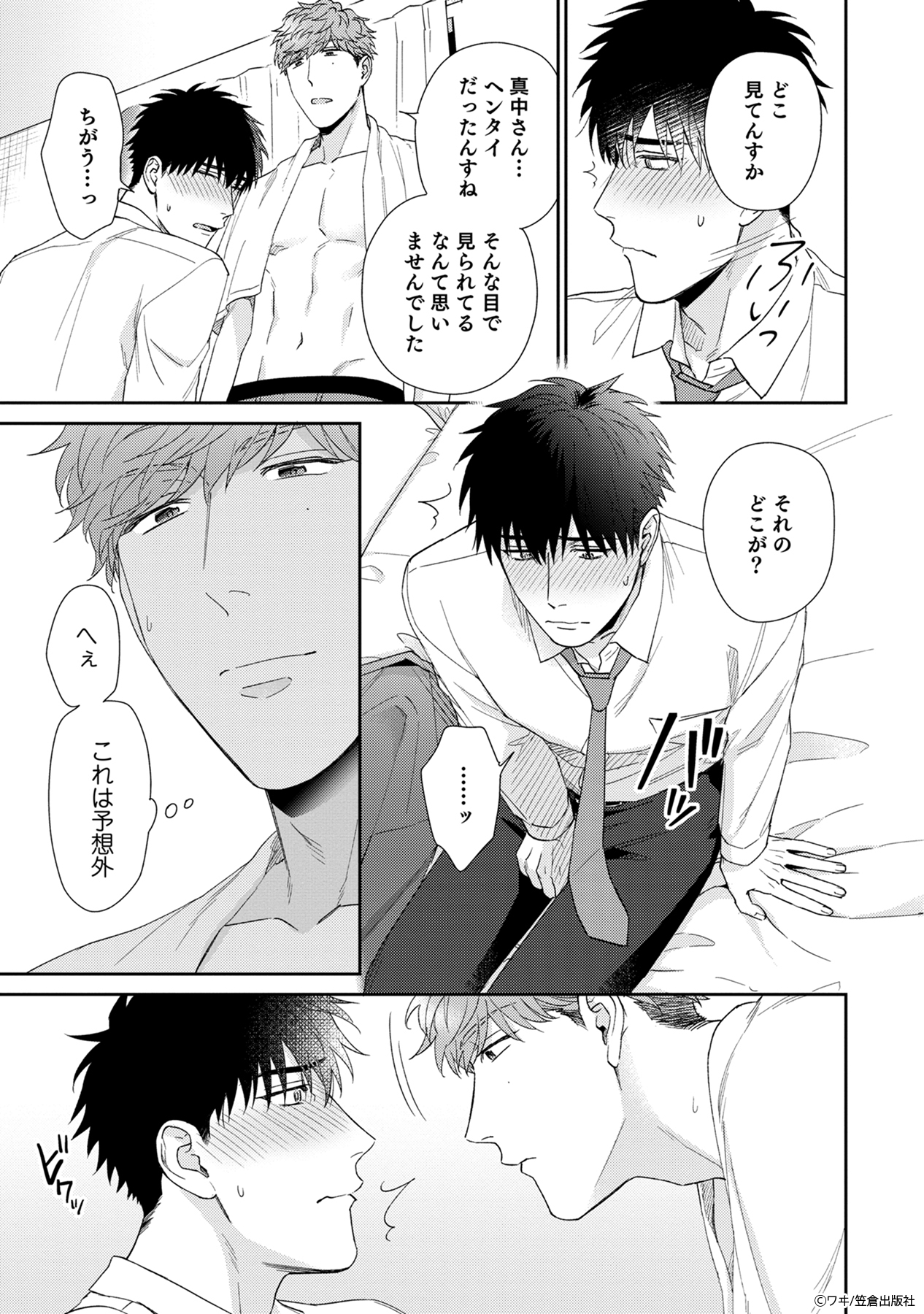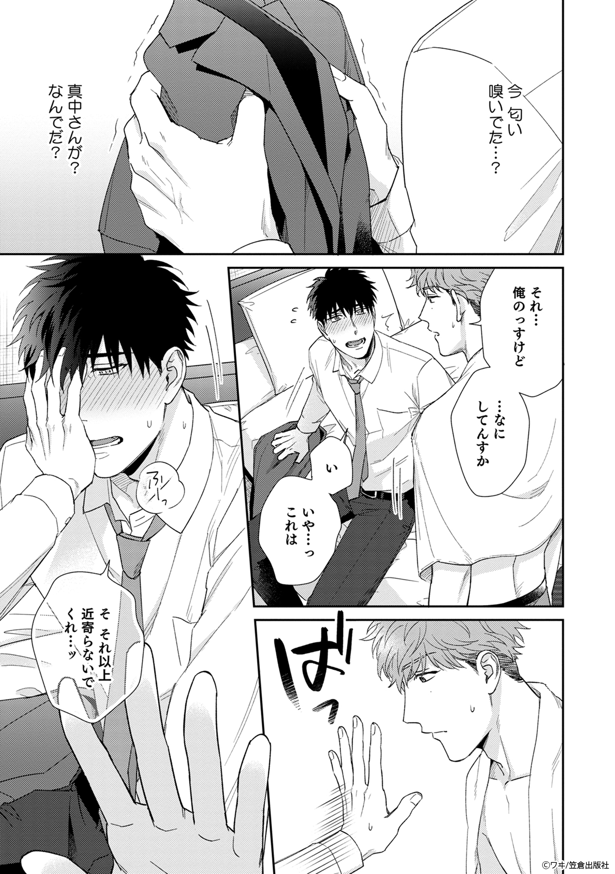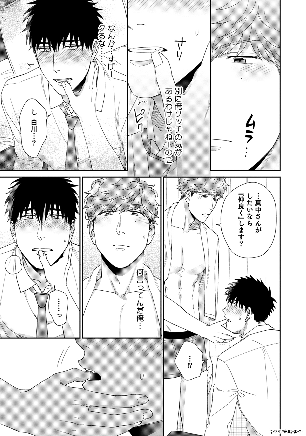 そんな風に思っていたのに、風呂上がりに白川の上着を嗅ぎ、勃起する真中を目撃してしまったことで状況が一変。